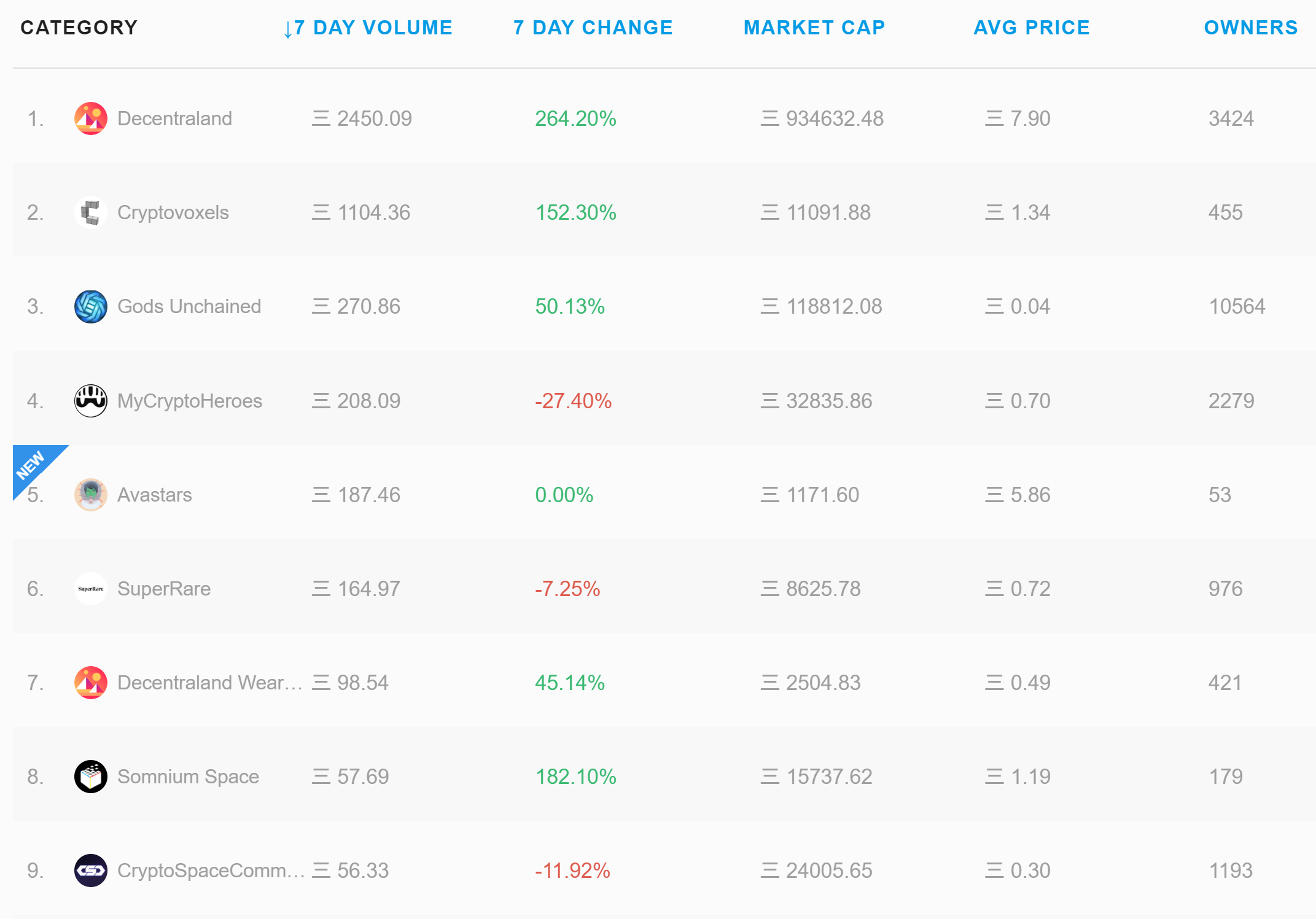 The potential of this decentralized virtual world built on Ethereum is mind-blowing! Land sales continue to dominate the top of the OpenSea 7-Day Volume Rankings, and Wearables just cracked the Top 7.